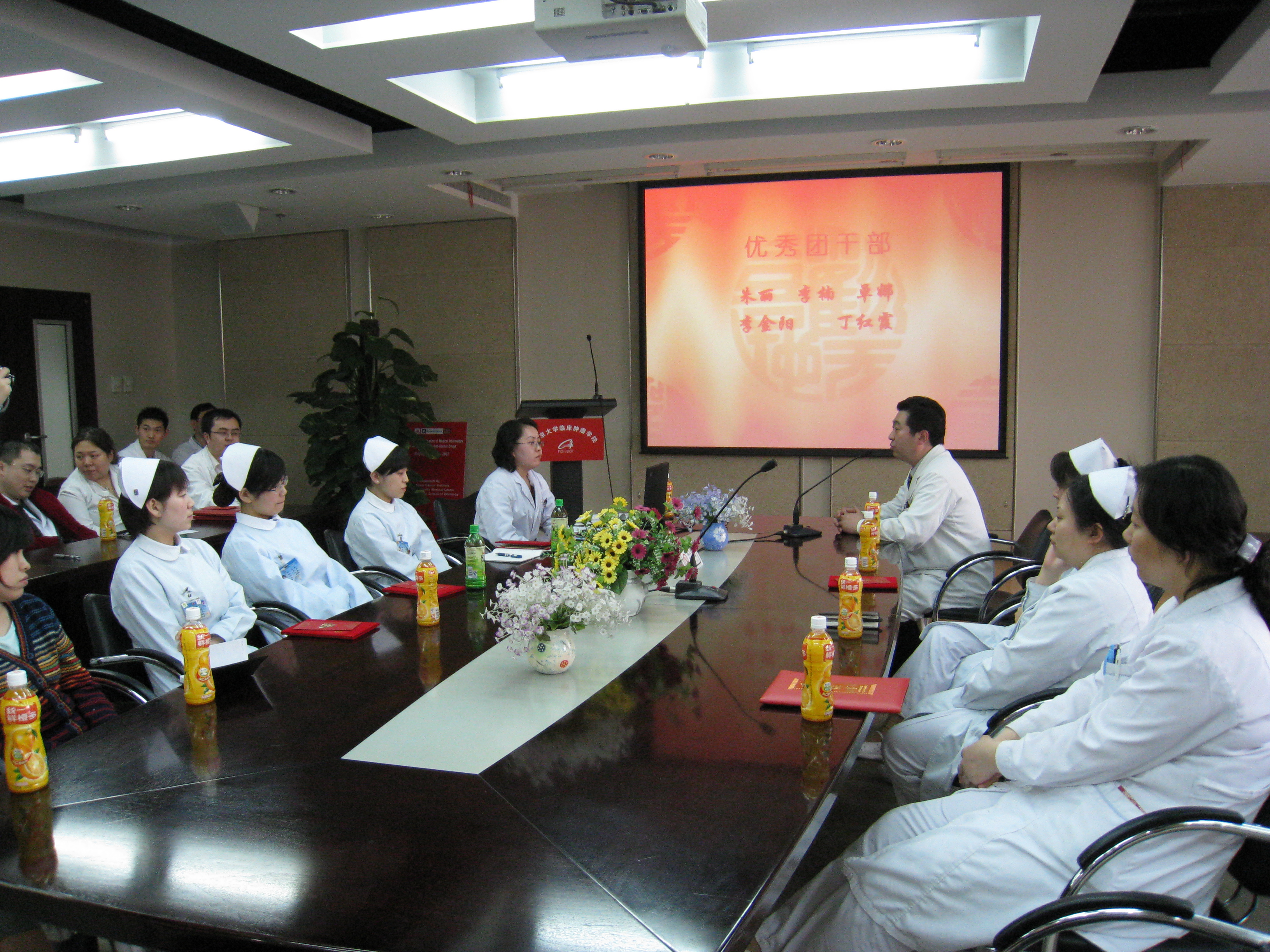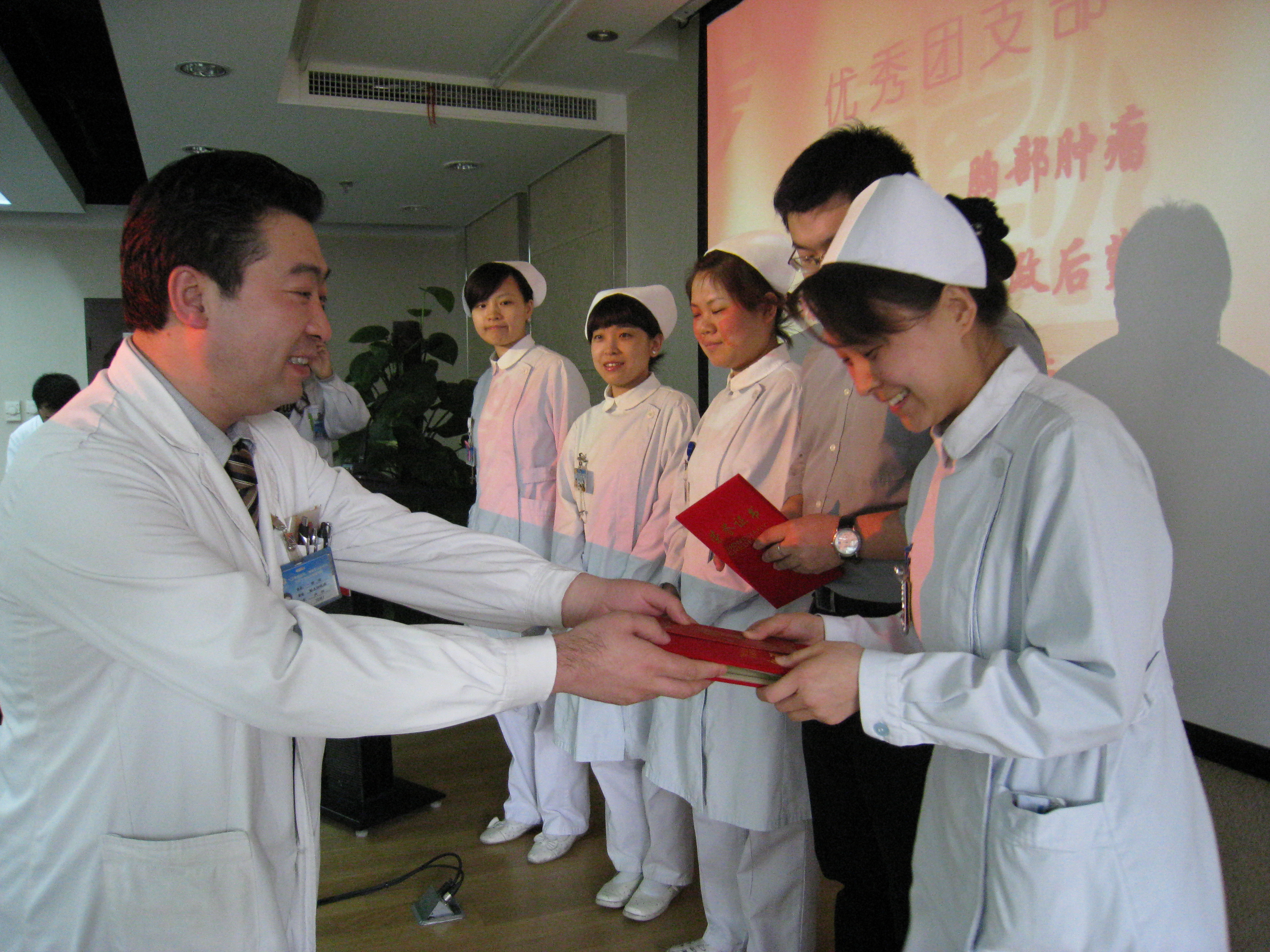 团委书记郭芳首先对2007年团委的活动作了回顾,对取得优秀成绩的各支部及成员表示祝贺,并对为团委活动辛勤付出的所有团员表示感谢。会上,宣读了表彰决定,对2007年度获得院青年岗位能手的梁震、武爱文、尤渺宁、鲍丽萍、李勇、王楠,获得优秀团干部的朱丽、李楠、李金阳、单娜、丁红霞,以及获得优秀团支部的肝胆外一支部、胸部肿瘤支部、肾黑支部、综合内一支部、行政后勤支部等各类称号的集体和个人进行了表彰,并颁发了荣誉证书。