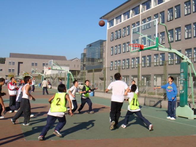 阳光明媚,篮球场上那一个个浸润了汗水的身影成就了比阳光还灿烂的靓丽风景。