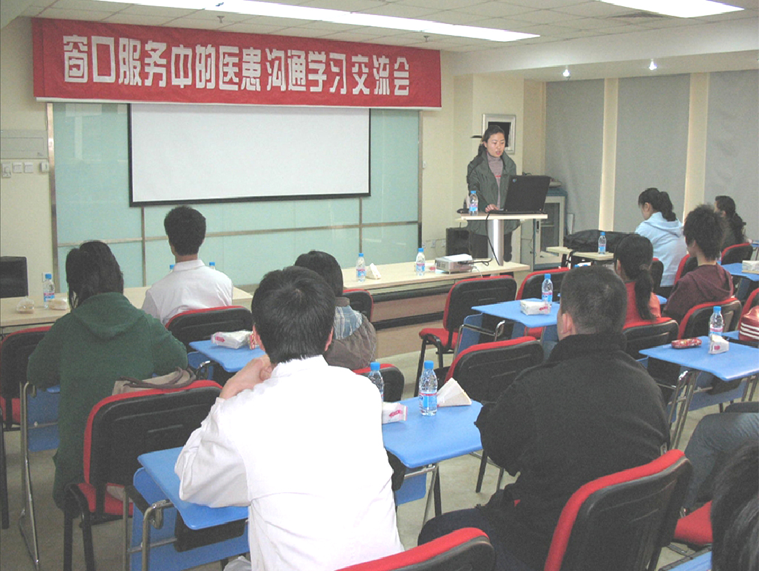 4月3日,财务处、收费处团支部共同组织召开了本系统窗口服务医患沟通学习交流会。财务处田秀英处长主持会议,医院团委书记朱九田应邀出席,本院连同门诊部、二门诊部窗口服务人员共47人参加了此次活动。活动的主要内容是服务礼仪技巧培训和医患沟通经验交流。