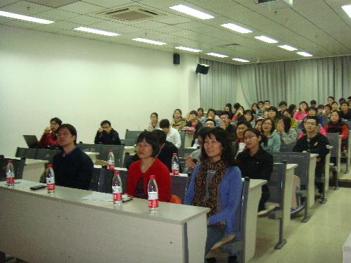 接下来各个支部开始了各具特色、形式丰富多彩的展示。伴随着优美动听的音乐,我们看到了08级2班团支部一年来的多彩多姿活动。09级1班团支部用轻松生动的现场表演的形式,仿佛把大家带到了元宵晚会的现场,展示出他们曾经的点点滴滴,充分展现出他们特有的青春活力,将现场的气氛推向高潮。在参加评优的6个团支部展示结束之后,还特别邀请到06级的学长分享他们的经验,以及10级学生为我们展现他们在燕园的别样生活。