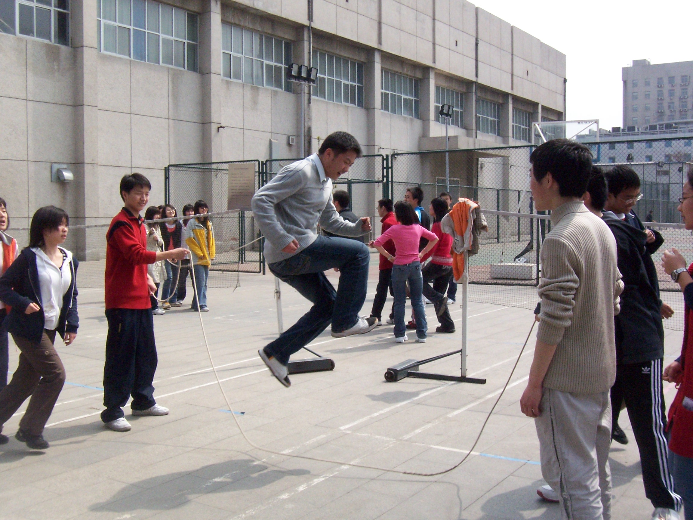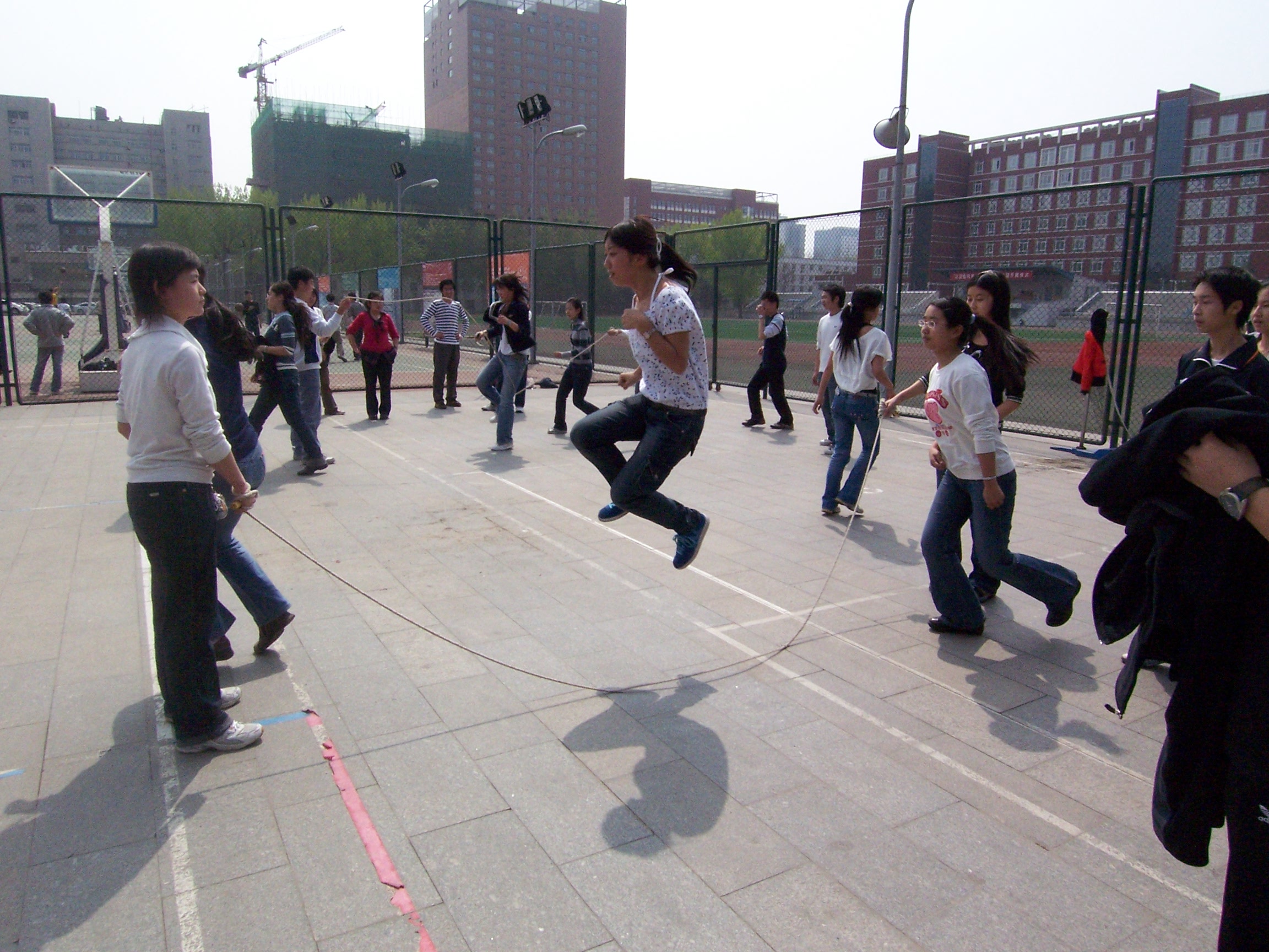 2008年4月9日,药学院体育部在风雨操场开展了“炫彩夏日,激情奥运”系列活动之跳绳比赛,药学院06级和07级共八个班的同学参加了这次活动。经过激烈的角逐,06级应用药学以三分钟253个赢得第一名的好成绩,07级二班以三分钟211个获得第二。