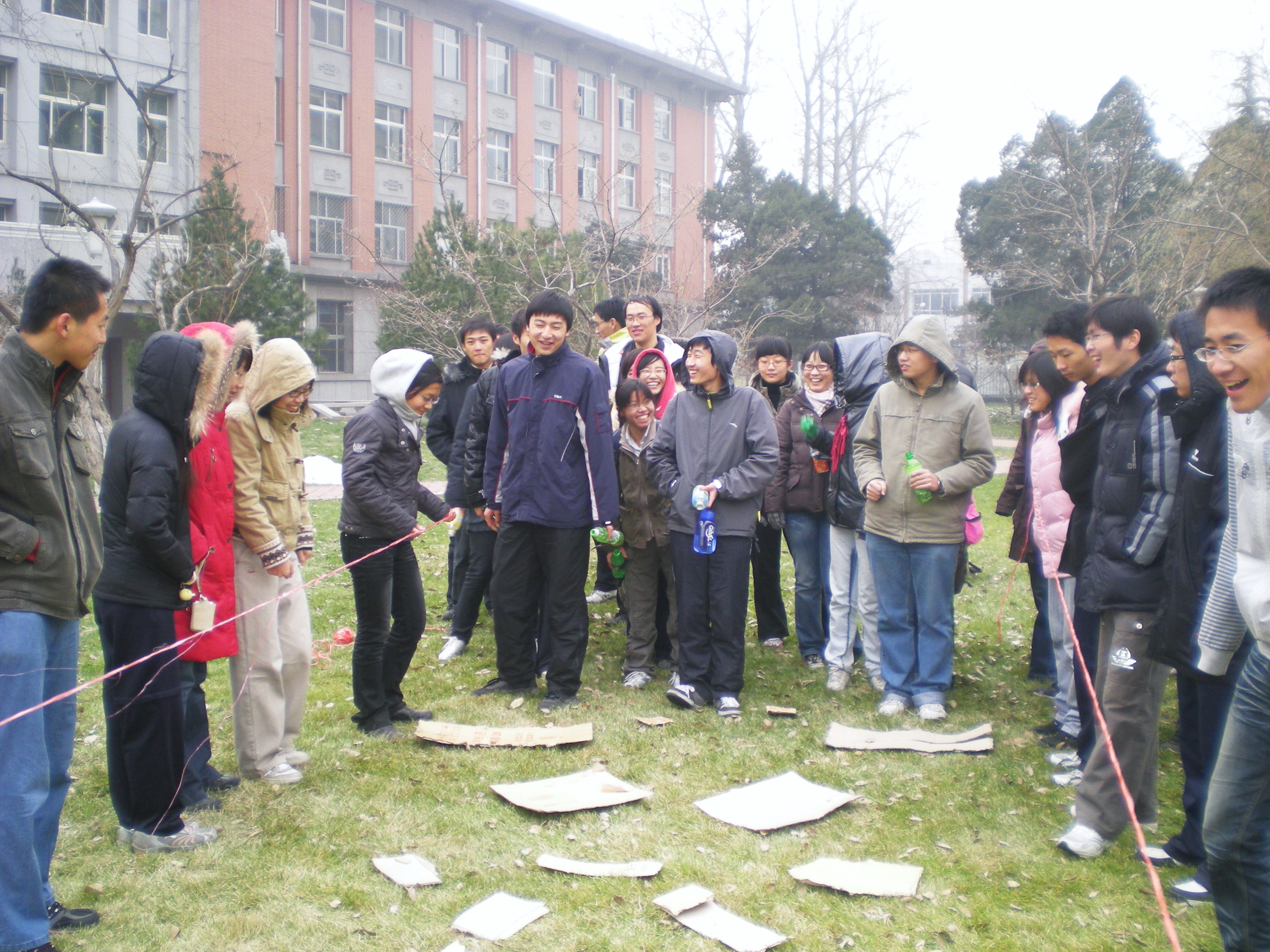 当日下午2:00,在解剖楼后的中心花园开展了第二次干训活动。同学们按照分组进行了素质拓展训练,在简短的相互认识后,大家开始参与到精心准备的游戏活动中,有绳子围房子、荆棘取水、传气球等。虽然室外寒风逼人,但大家的热情高涨,玩的不亦乐乎。