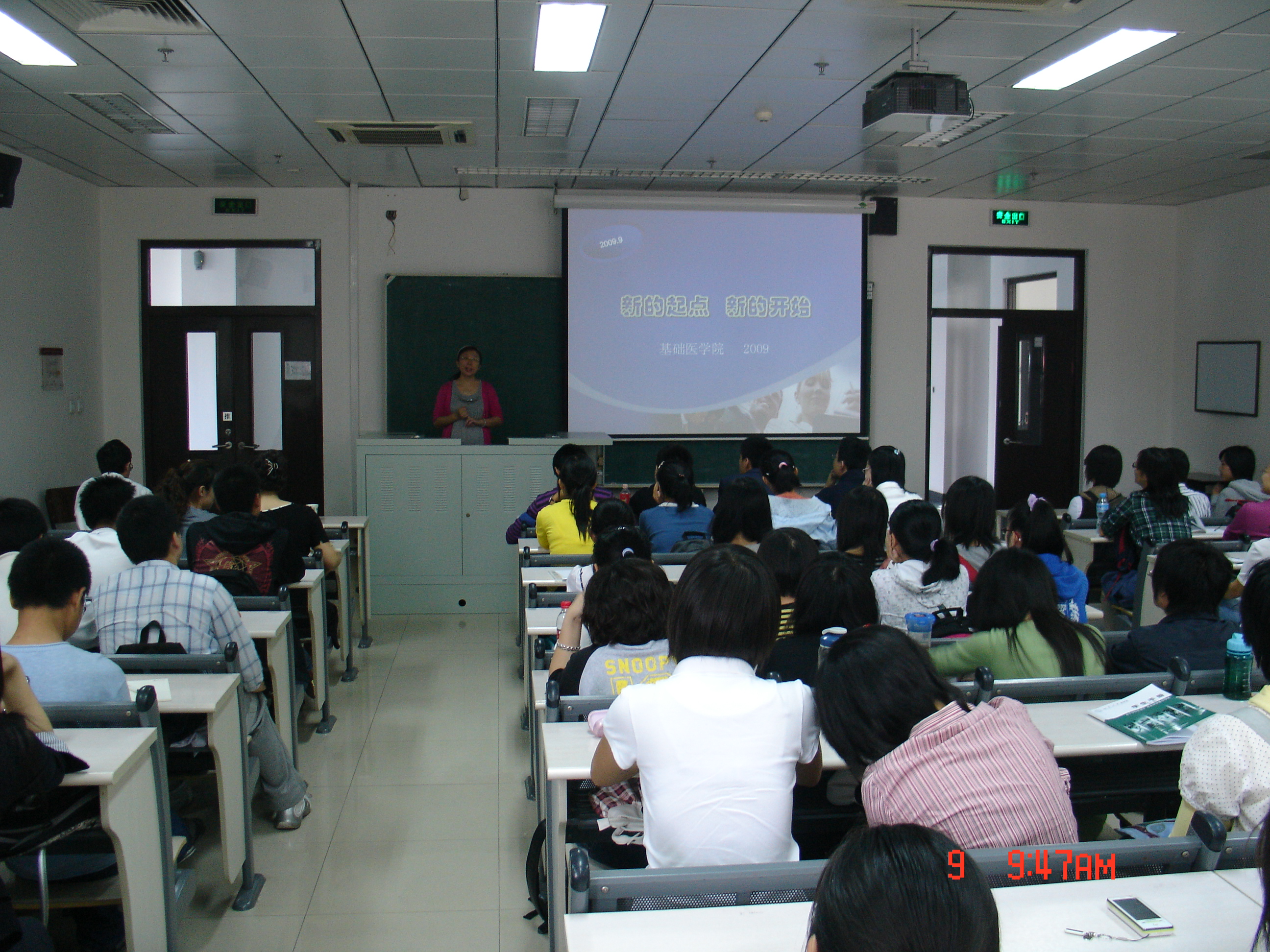 短暂的大学第一课让新同学对基础医学院有了初步的了解,更对自己所学的专业和未来的就业前景充满信心。新的起点,新的开始,相信09级同学一定能够在北大,在医学部,在基础医学院度过美好的大学时光,拥有更加辉煌的未来!