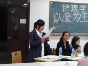 2009年4月2晚7:00护理学院团委在逸夫楼507举办了以“爱”为主题的新生辩论赛复赛。护理学院党委副书记侯淑肖老师、团委书记张进瑜老师和护理学院人文教研室郭记敏老师担任评委。