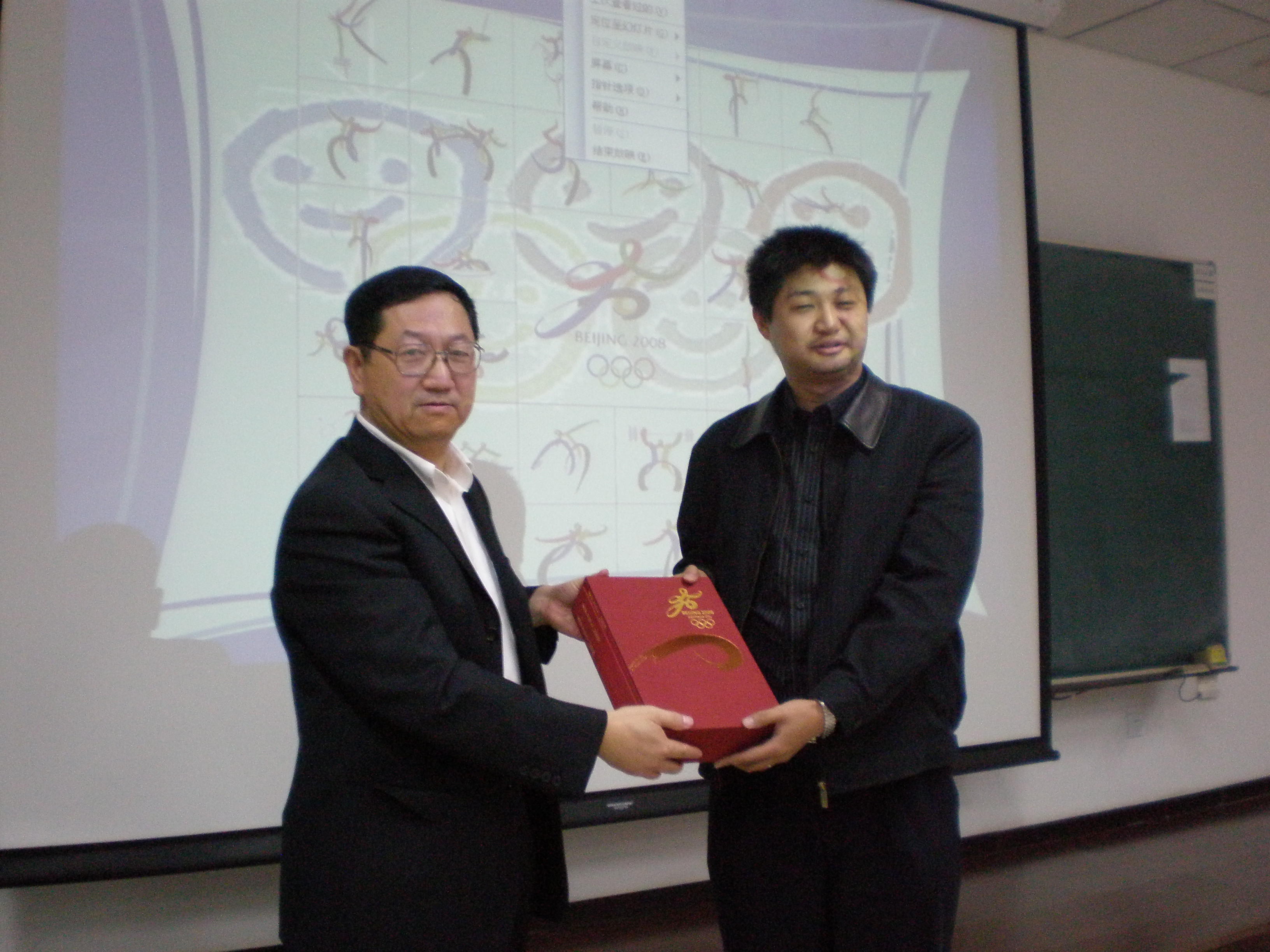 活动接近了尾声,孙先生赠送了自己珍藏、现已绝版的重达2.5公斤的《中国申奥报告》,为表示感谢我们回赠给孙先生一份代表北医的银盘礼品,以及一本青年志愿者协会将所有有关奥运活动的照片汇编而成的小台历。最后,孙先生为活动题下了:“弘扬申奥精神,发展医学科学”12个大字。